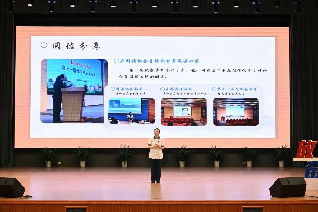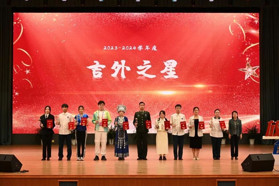 学生处处长孙加奇宣读了《关于表彰2023-2024学年度"吉外之星"的决定》,并表示希望受表彰者能够珍惜荣誉,秉持校风,再创佳绩。同时,呼吁全校学生要以他们为榜样,志存高远、脚踏实地,不断提升综合素质,成长为社会主义建设者和接班人。校党委副书记苗晶为“吉外之星”获奖者进行表彰。