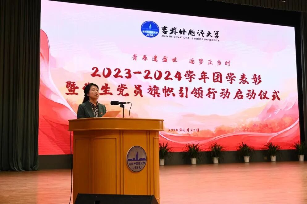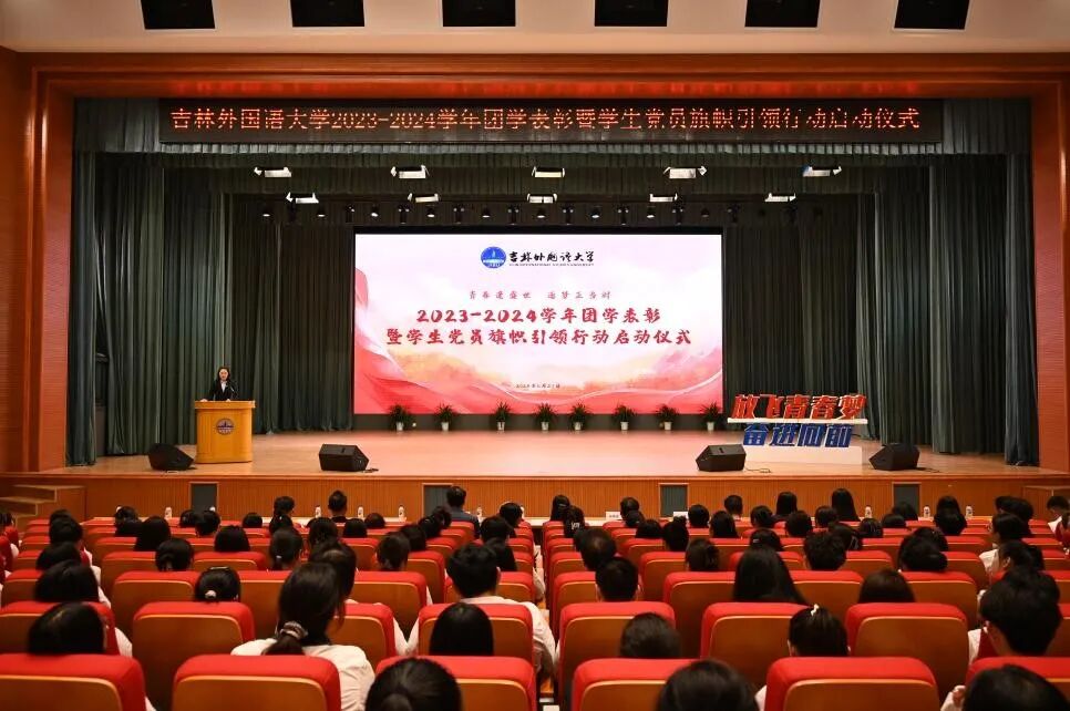 2024年6月27日17时,吉林外国语大学2023-2024学年度团学表彰暨学生党员旗帜引领行动启动仪式在世桥大厦一楼报告厅顺利举行。本次活动由学生处和校团委主办,旨在表彰对本年度在共青团工作、学习、创新实践、文体活动中表现优异的集体和个人,以提升荣誉感,激励师生努力奋进,引导树立正确思想价值观,培养良好品德品质修养,充分发挥学生党员团员先锋模范作用,为社会以及学校发展贡献力量。