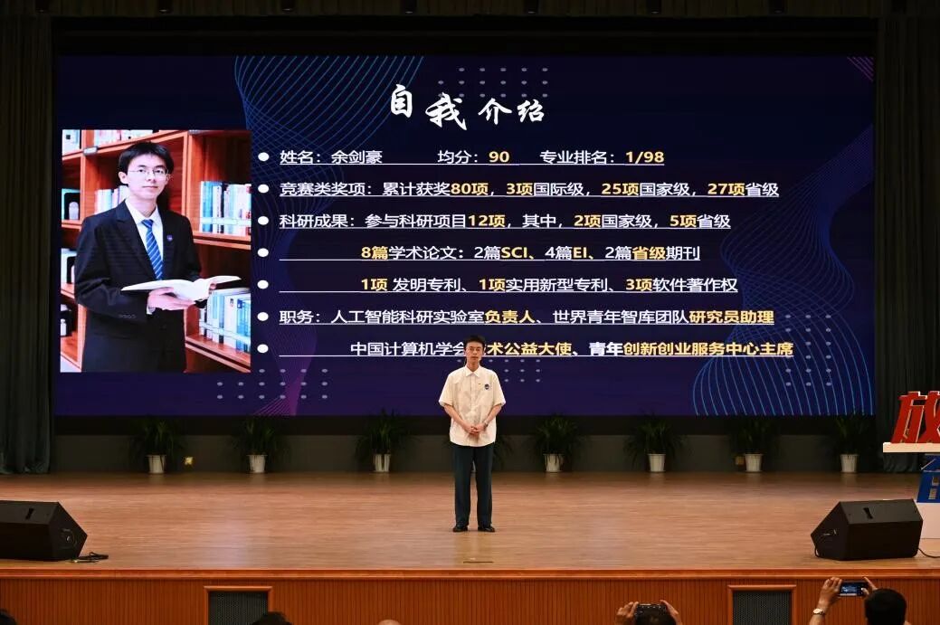 “学习之星”曹若钰、“创新之星”余剑豪以及“自强之星”石蓉晖进行个人事迹的分享。