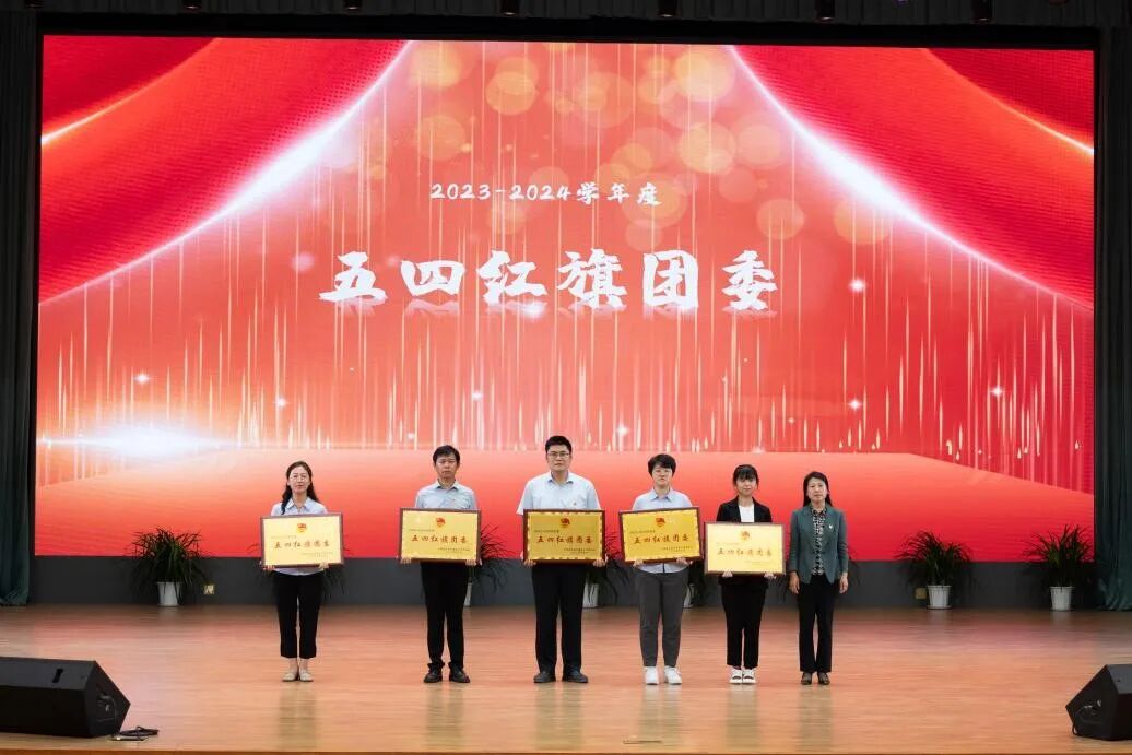 校党委副书记苗晶为西方语学院团委、东方语学院团委、国际商学院团委、教育学院团委以及人工智能学院团委授予“五四红旗团委”荣誉称号。