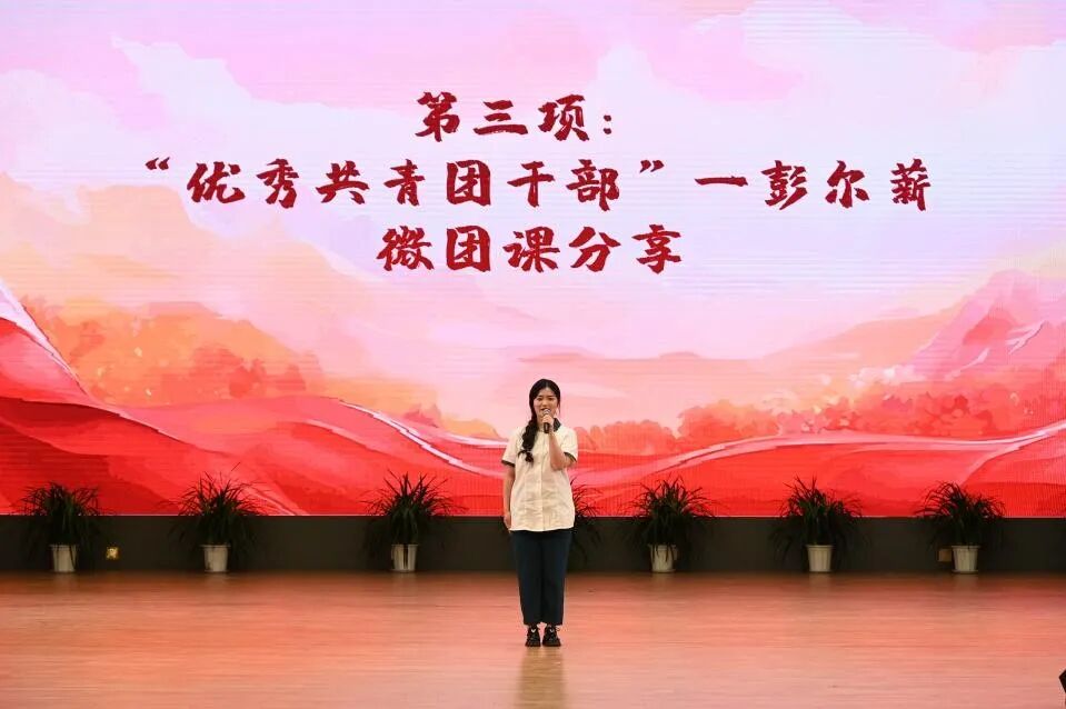 朝鲜语2202班的彭尔薪同学作为优秀团干部代表进行了微团课分享。她以饱满的热情和深切的情怀,总结了国家发展历程的一系列重要成就,并号召同学们肩负远大理想,争做优秀青年。
