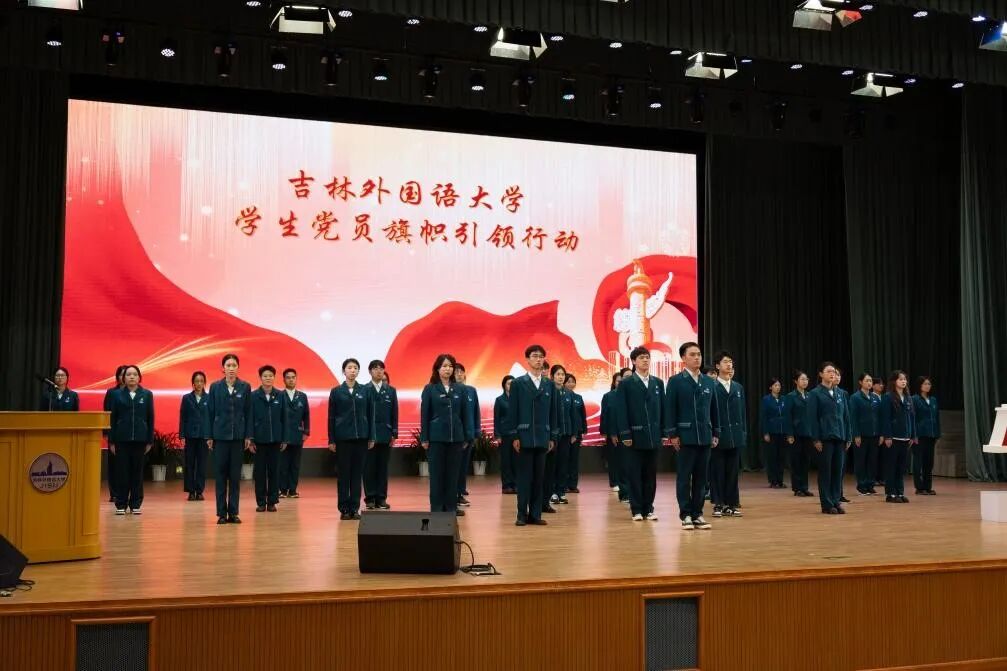 随后,学生党员旗帜引领行动正式启动。校党委副书记苗晶为学生党员代表授旗,全体学生党员代表一同宣誓。他们的嘹亮坚定的声音表达将无私奉献为国家事业贡献力量的决心,同时标志着新学年团学工作的全面开启。