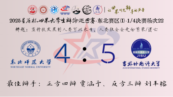 2 月 20 日,备受瞩目的 2025 星辰杯世界大学生辩论巡回赛・东北赛区(Ⅰ)初赛在激昂的氛围中正式拉开帷幕。来自东北地区的 30 多所高校,集结了百余位思维敏捷、口才出众的辩手,他们怀揣着对辩论的热爱与追求,齐聚一堂,共同开启这场语言艺术的巅峰对决。初赛现场,气氛紧张而热烈。辩手们围绕 “在学历贬值的大环境下,我们要不要向上卷” 这一极具现实意义的辩题,展开了激烈的交锋双方你来我往,妙语连珠,将辩论的魅力展现得淋漓尽致,在多元价值的碰撞中,深入剖析着当代青年在时代浪潮下的困惑与抉择。随着赛事的推进,复赛阶段的辩题 “在得知未来讯息时,我们应该接受既定的未来还是选择努力去改变未来”,更是激发了辩手们的奇思妙想。 辩手们凭借独特的视角、严密的逻辑和生动的表达,为观众带来了一场精彩纷呈的头脑风暴,现场不时爆发出热烈的掌声。决赛阶段,辩手们将目光投向更具前瞻性和思辨性的辩题 ——“当科技发展到人类可以永生,人类社会是会走向繁荣还是灭亡”。面对这一极具挑战性的议题, 双方在思想的战场上激烈交锋,思想之光在唇枪舌剑中不断闪烁,妙语之浪在你来我往间汹涌澎湃。