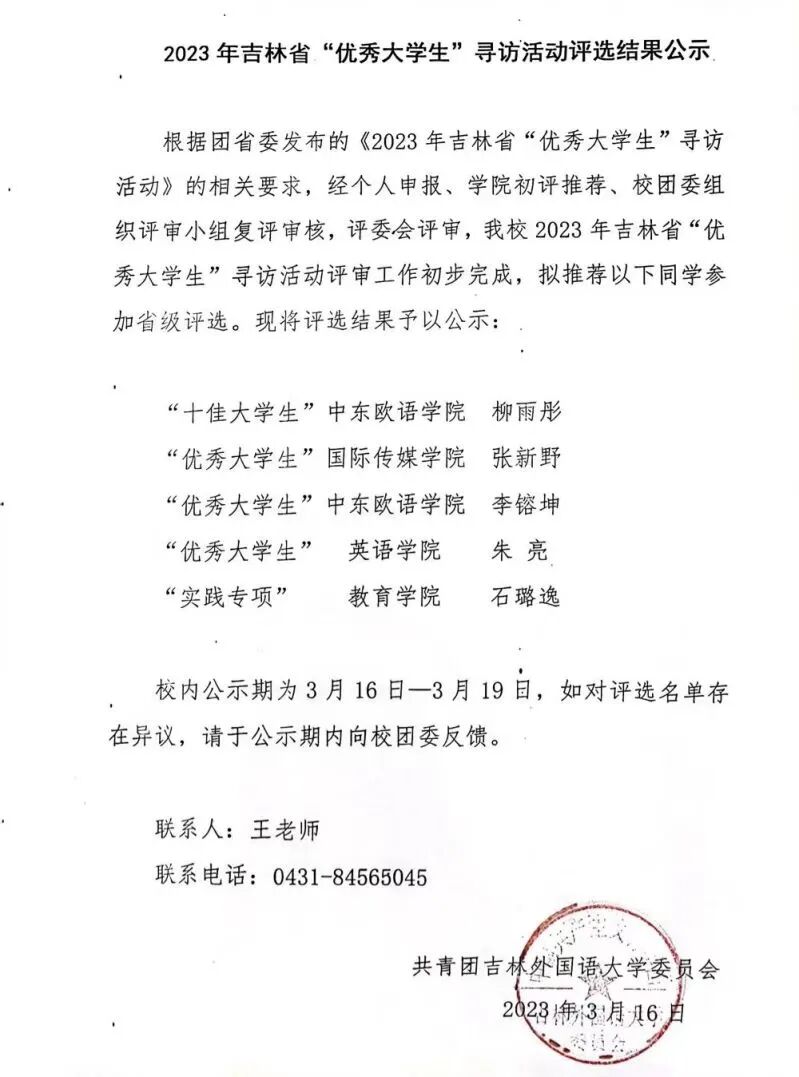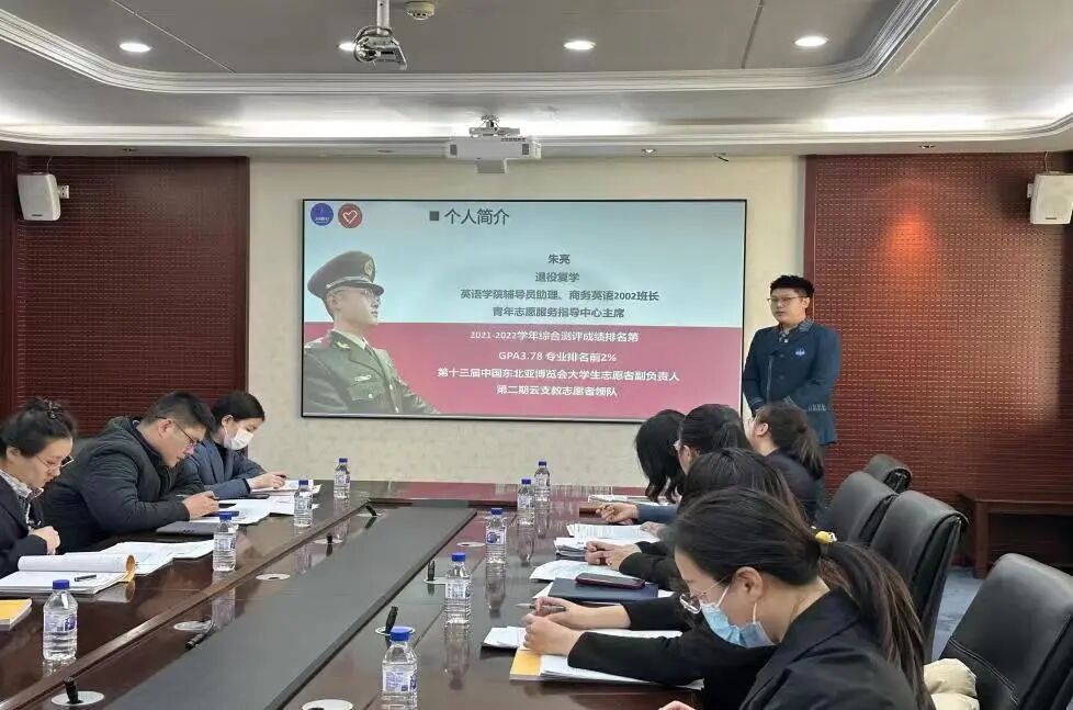 3月16日下午,2023年吉林省“优秀大学生”寻访活动校级评审会在综合楼325会议室举行。经学生个人申报,学院初评推荐,共有15名候选同学参加此次评审会。校团委副书记李明丽、学生处处长孙加齐、校团委专职团干部及各学院团委书记和辅导员代表担任评委。