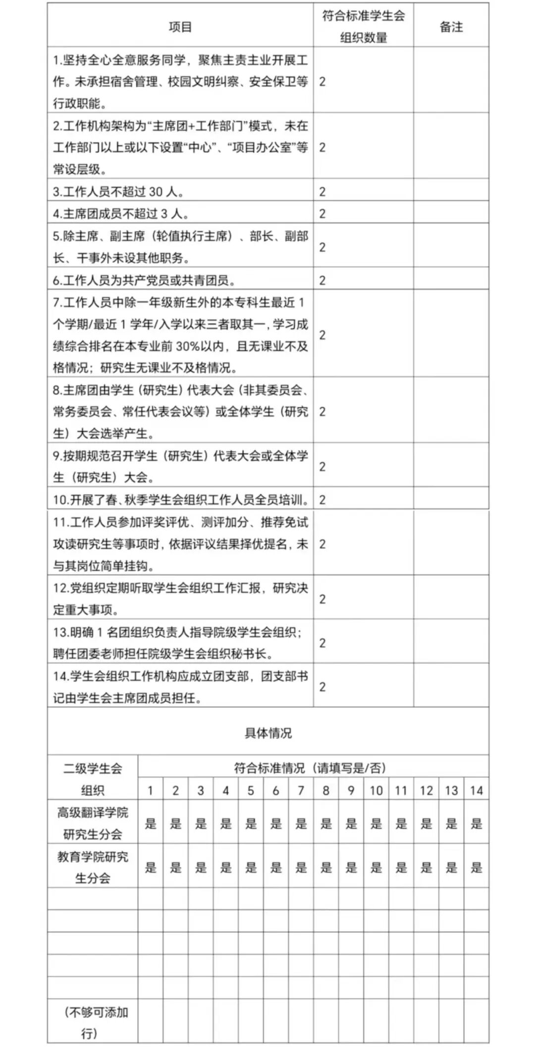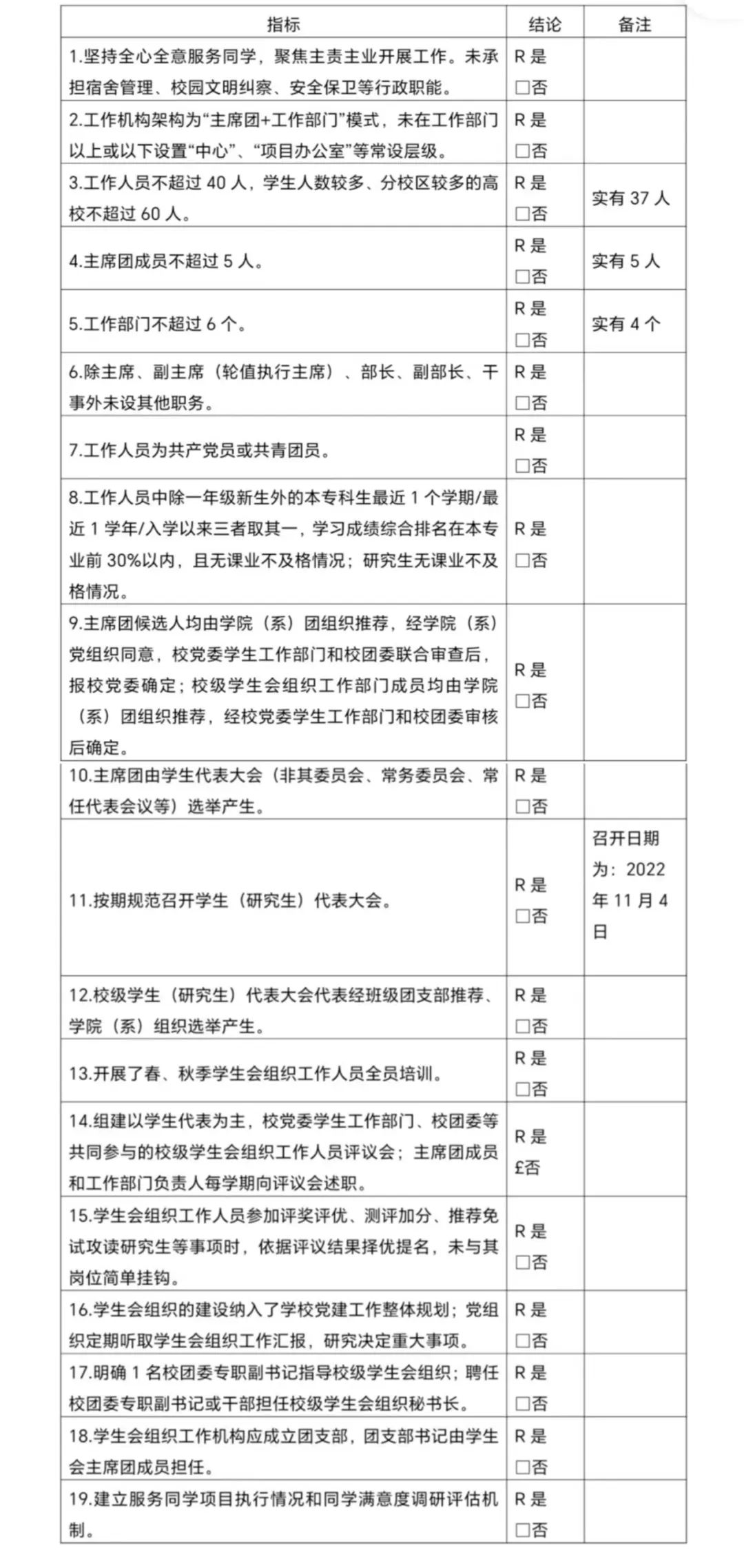 (含二级院系、书院、分校区等学生会、研究生会)改革自评表。