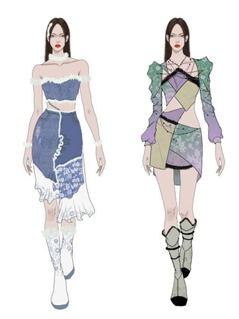 将缠枝纹在现代服饰设计中的应用:以不同的方式和材料,探讨缠枝纹在现代服饰设计中的应用,设计出符合当代年轻女性审美带有传统纹样的潮流服饰。创造出新颖、时尚和有文化内涵的服饰设计。
