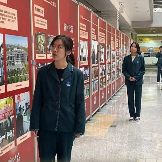 讲解员们以饱满的热情,专业的水准,高质量开展解说工作,为与会老师及学员精彩生动地讲述党的发展历程,成为展会现场一道靓丽的青春风景线。他们从不同的视角、发展的细节引领吉外学子学习在党的指引下,取得的辉煌成就。出色的讲解服务得到了老师和同学们的认可与好评,讲解服务为本次“学习二十大·传承百年志·奋进新征程”主题巡展活动增光添彩。