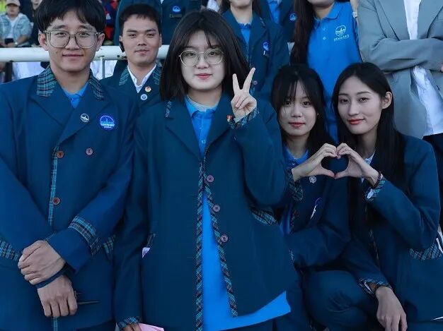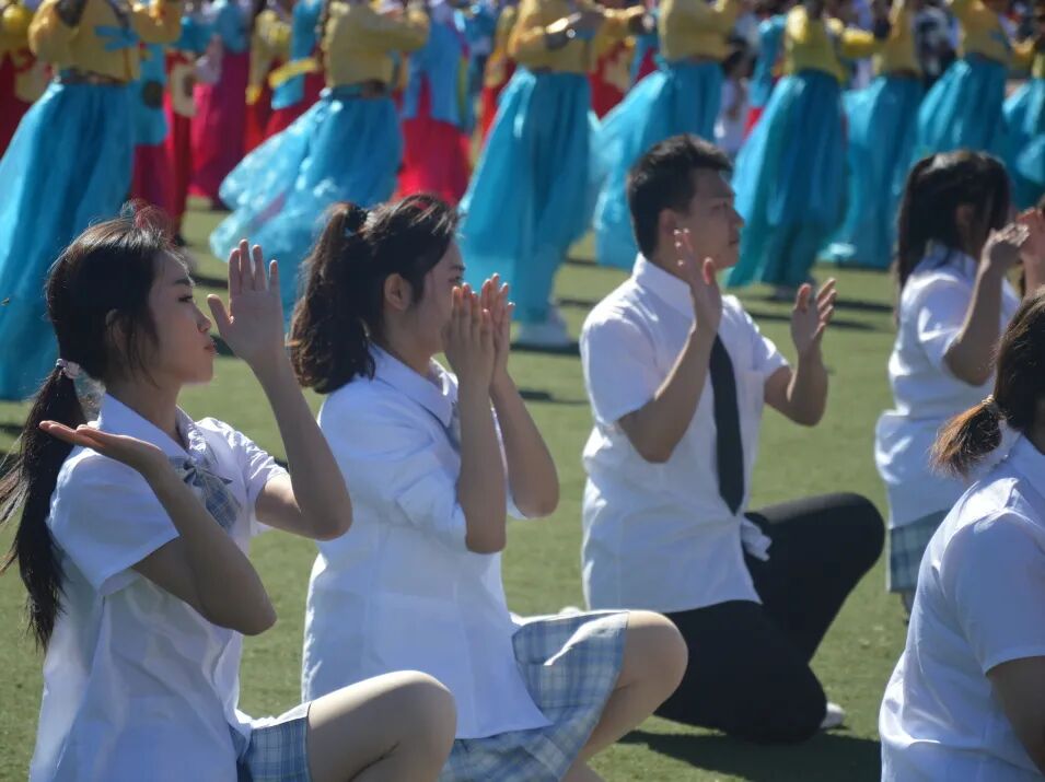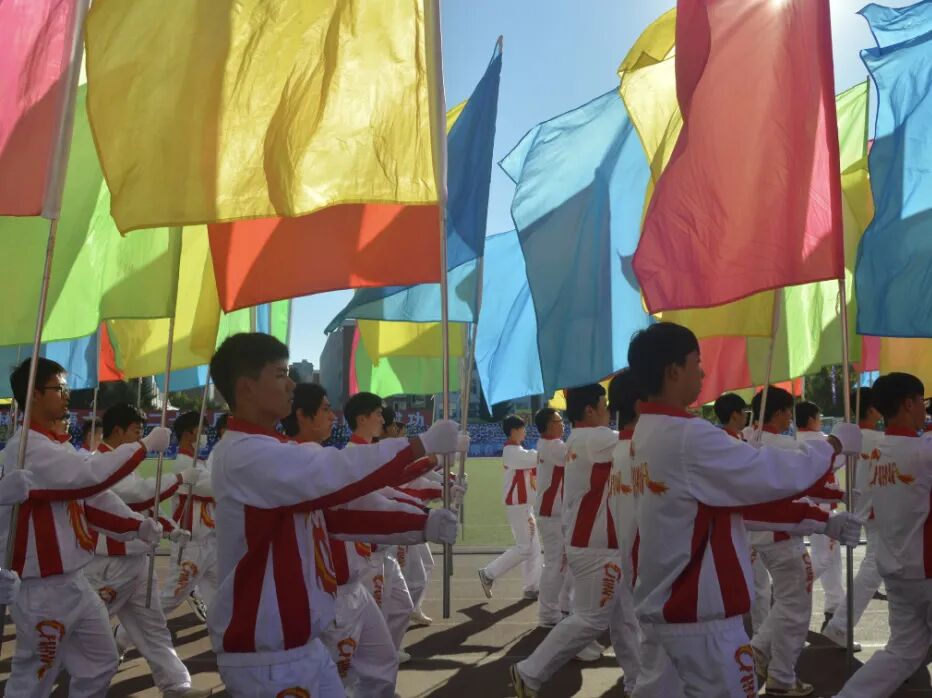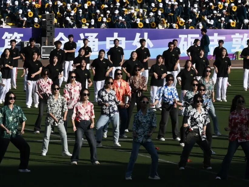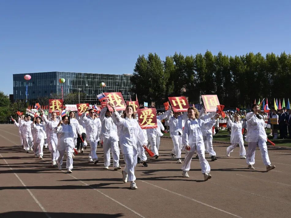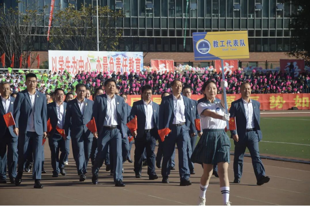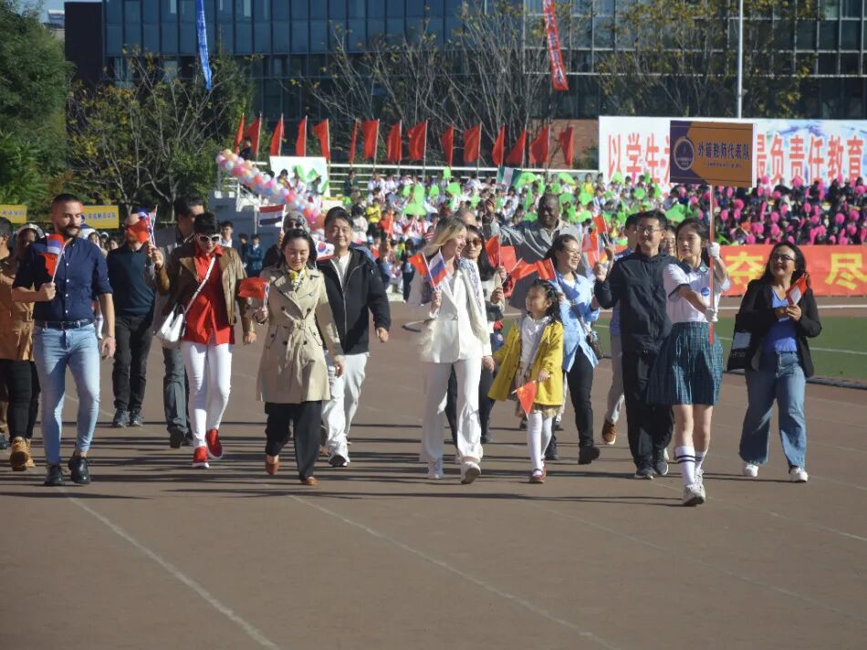 教职工代表方队整齐的步伐中,折射出为人师表的庄严。儒雅的气质中,涵盖着读书育人的内涵;外教方队紧跟其后,他们每个人都挥着自己的小旗子,热情的与台上观众互动、打招呼,喜悦洋溢在脸上久久不能散去,充分的体现了中西文化的友好交流;外国留学生组成的太极方队,展现了我国传统文化的魅力。