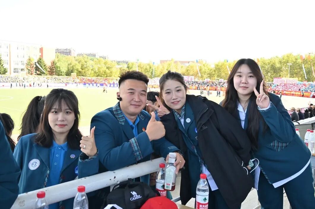 赛场外,校院两级团属学生组织积极策划并参与礼仪队、礼炮手、军乐团、广播员、调度员等多个岗位,学生志愿者整理器械、往来繁忙,广播员播报及时、情绪高涨,医护人员默默守护,驻守在旁,组委会工作人员准备充分,保障有方……无数人的努力共同保障运动会的顺利进行。