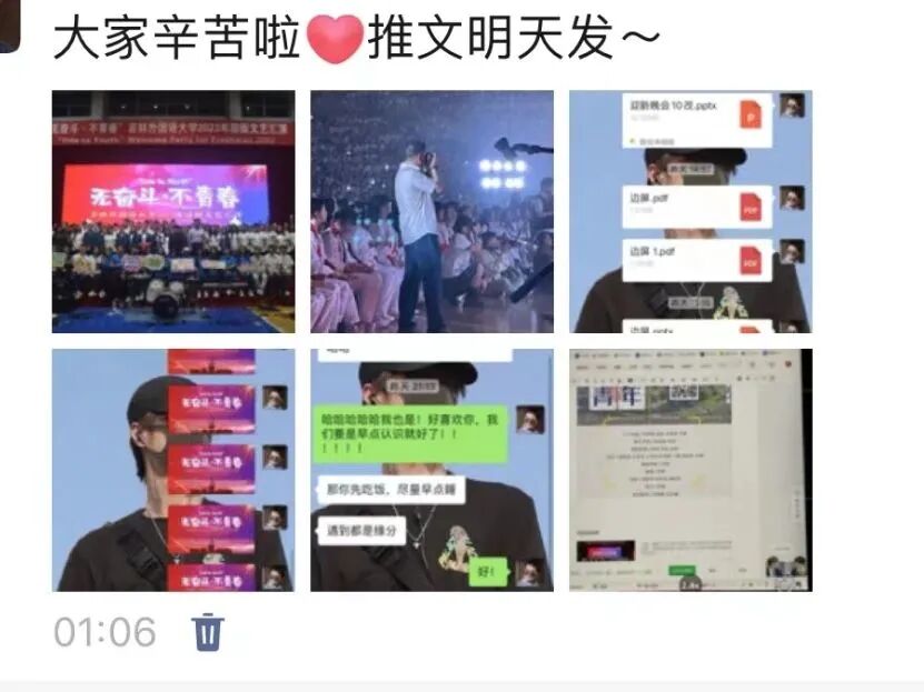 法语2302白绍婷:一个大型节目离不开我们的后勤工作人员,尤其是看到我们的老师,他的嗓子已经喊哑了,还在组织我们的会场,我觉得也是非常非常的感动,也非常感谢每个人的参与。