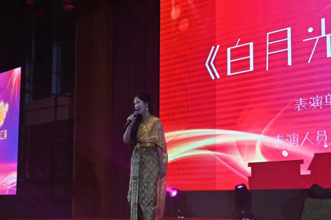 中东欧语学院的舞蹈《友谊的花环》揭开了新篇章,国际交流学院的泰国留学生独唱《白月光与朱砂痣》,大艺团的音乐剧《Lalaland》,东方语学院的多语联唱《向云端》,人工智能学院的歌舞《Love in the Dark》,英语学院的小合唱《One Day》和西方语学院的多语联唱《中国话》,演绎着多国文化互鉴的美好场面,“学好外国语,做好中国人”影响着每一个吉外人,用外语讲好中国故事!同时也表达了我校多元文化交流的艺术氛围,将晚会推向了高潮。