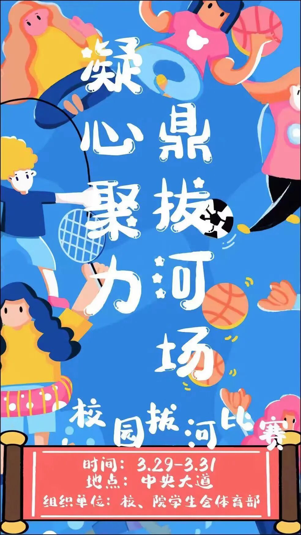 为进一步丰富我校青年学生的校园生活,培养学生顽强拼搏、团队协作的精神,增进同学间集体荣誉感与凝聚力,校团委将开展“凝心聚力·鼎拔河场”拔河比赛活动。具体通知如下: