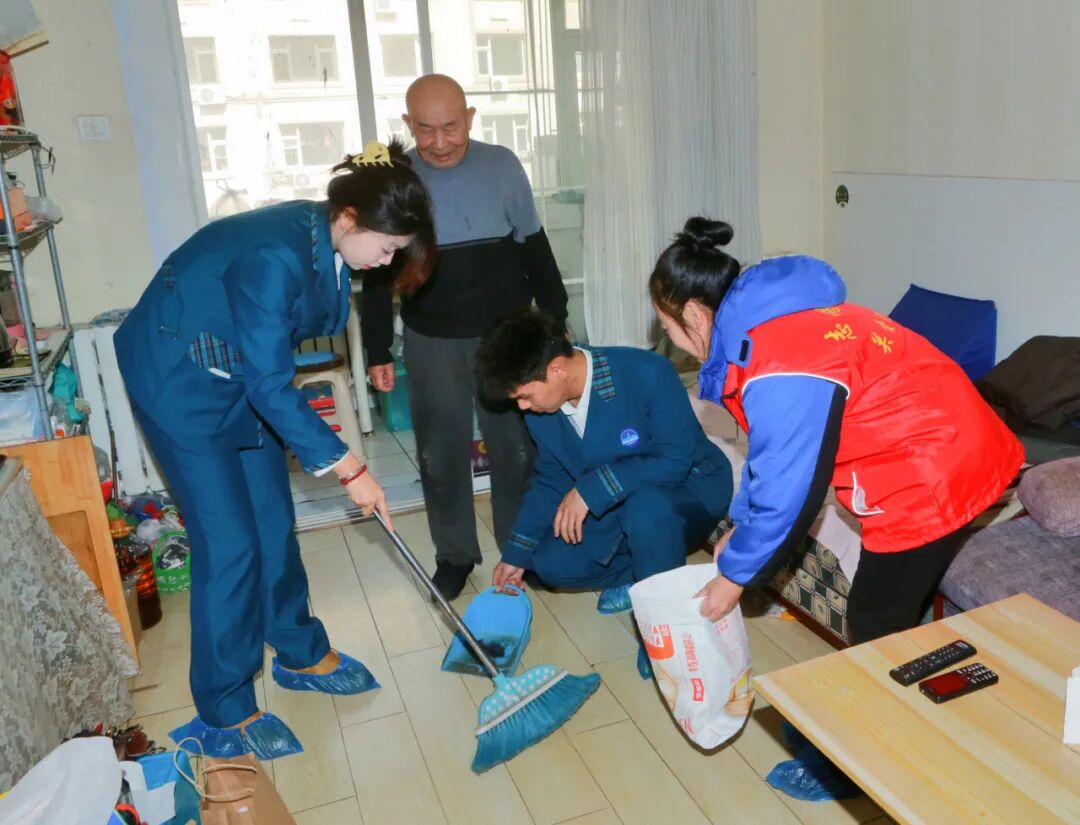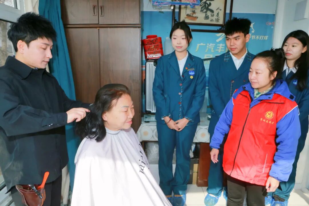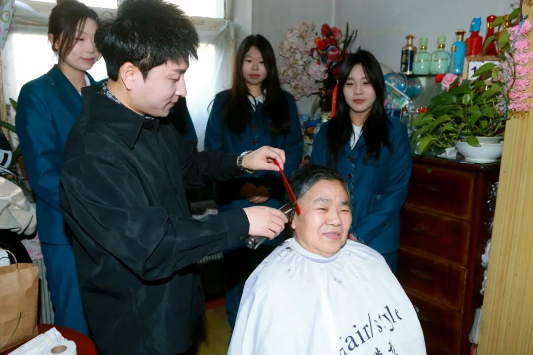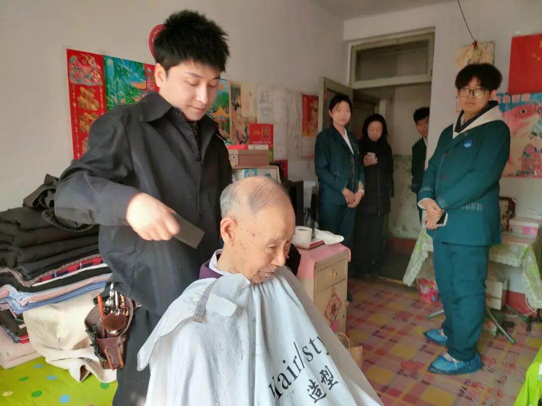 活动现场,志愿者们分工明确,各项服务有序开展。同学们迅速行动起来,有的拿起扫帚清扫灰尘,有的认真整理房间,将物品摆放整齐,用行动诠释着关爱他人、无私奉献的精神。与此同时,绿园区美发协会会长也赶来为老人们提供专业理发服务。会长还会耐心询问老人的满意度,根据需求细致调整,力求让每位老人都感到满意。