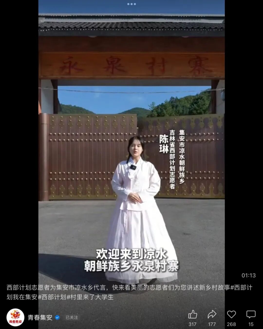 凉水朝鲜族乡,坐落在集安市西南 43 公里处。刚来到服务地,陈琳便立刻感受到了来自团省委和团市委那如沐春风的关怀。乡政府领导和同事们的热情帮助,也似冬日的暖阳,让她倍感温暖。初到岗位,陈琳主要负责凉水朝鲜族民俗文化展示馆的讲解工作。她深知这份工作责任重大,为了能够更好地完成任务,她投入大量时间查阅文献资料,全面了解凉水乡的旅游发展战略以及丰富多彩的朝鲜族民俗文化。