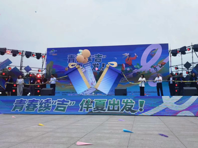 领导与嘉宾一同拉动礼盒,共同启动“青春续‘吉’,伴夏出发——吉林文旅大学生共创活动”。