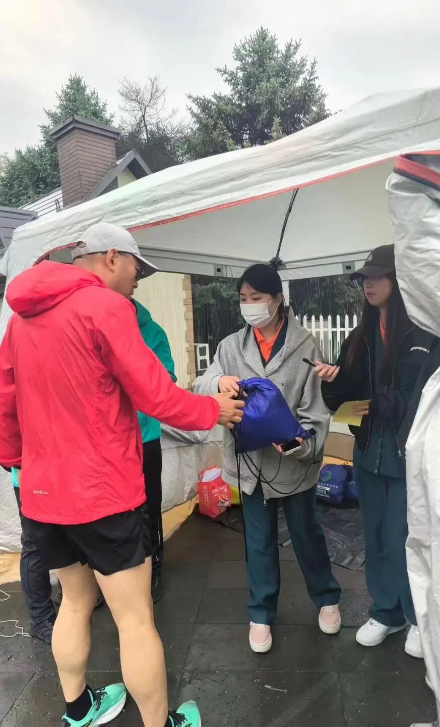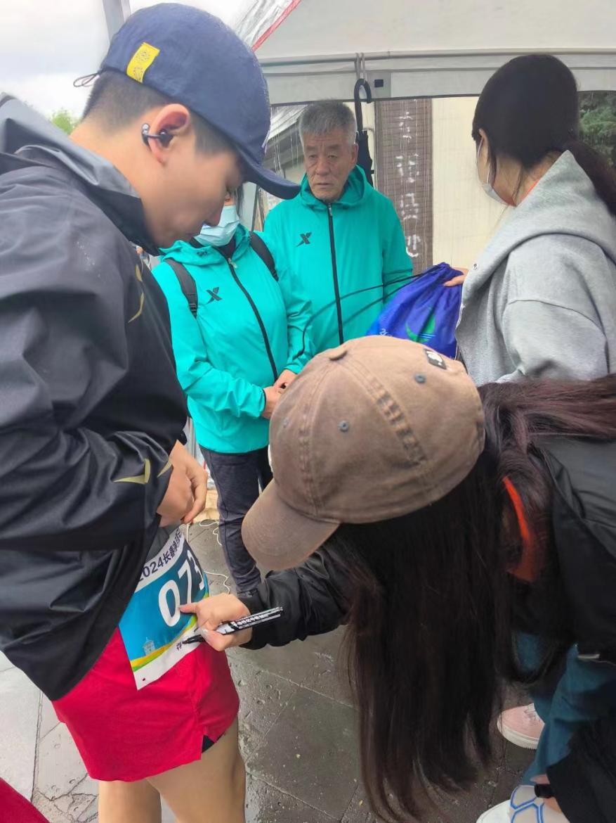 比赛当天伴有小雨天气寒冷,但这并没有阻挡志愿者们炙热的心,志愿者们早早来到女神广场,开展井然有序的志愿服务工作。赛事服务组的同学在起点协助选手们进行检录、寄存物品;点对组的同学在赛道沿途设立补给站,为选手们提供饮料、食物等能量补给,在终点迎接选手们的归来,为他们送上热烈的掌声和温暖的拥抱。志愿者们的细致服务让选手们感受到了家一般的温暖。