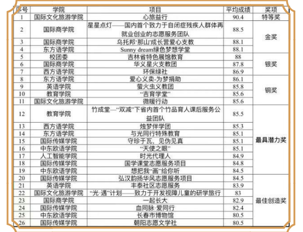 为深入落实我校公益精神,推荐优秀项目参加第六届中国青年志愿服务项目大赛,发挥大赛引领志愿服务发展风向标的作用,不断推动志愿服务项目化运作、精品化管理和制度化发展,引导广大吉外学子更好的树立目标与理想,抓住吉外志愿服务品牌的有利契机,打造“挖掘”、“培育”、“落地”一体化志愿服务项目成长链条,我校于6月成功举办了吉林外国语第二届青年志愿服务项目大赛。此次大赛共计10个学院的26个志愿服务项目参与其中,参赛项目涉及扶贫济困、阳光助残、关爱行动、水利公益,帮助留守儿童、帮扶自闭症儿童与空巢老人等等。此次活动的开展,充分展现了新时代吉外志愿者无私奉献,热心公益的精神风貌。