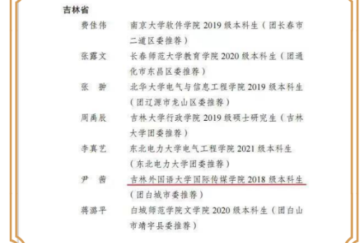 7月20日,在共青团吉林省委选树2022年吉林省“优秀大学生”100名、“优秀大学生(实践专项)”50名的活动中,我校孙宏伟、崔萧、王媛3名学生光荣入选。我校团委以此为契机,充分发挥先进典型的示范引领作用,大力宣传新时代青年的先进事迹,教育引导广大青年学生肩负光荣职责,在实现中华民族伟大复兴中国梦的路上贡献青春力量。