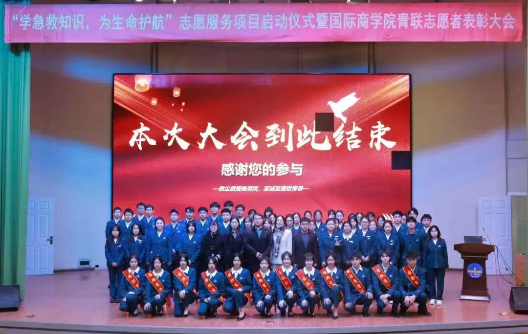 “学急救知识,为生命护航”志愿服务项目启动仪式暨国际商学院青联志愿者表彰大会为提高我院学生在突发医疗事件中的自救和互救能力,掌握基础急救知识,为建设健康平安校园奉献自己的力量;同时,表彰过去一学年为志愿而付出的集体及个人,增进学生对志愿活动和社会实践活动的积极性,国际商学院与吉林大学第一医院合作,于3月29日下午15:30分,在多功能报告厅召开“学急救知识,为生命护航”志愿服务项目启动仪式暨青联志愿者表彰大会。