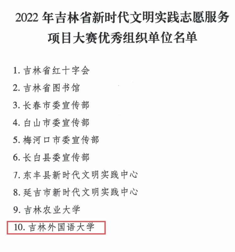 喜报|吉林外国语大学志愿服务项目在2022年吉林省新时代文明实践志愿服务项目大赛中获佳绩