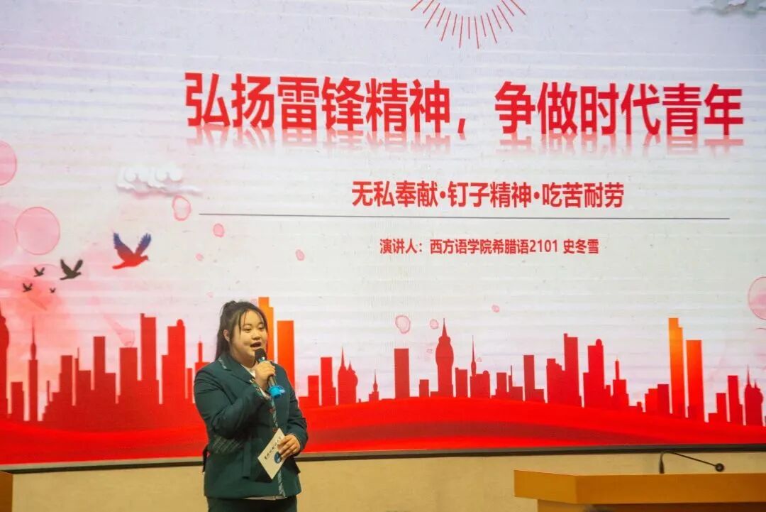 阳春三月,清风徐来,2023年3月5日是第60个“学雷锋日”,也是第17个“中国青年志愿服务日”。为深入学习宣传贯彻习近平新时代中国特色社会主义思想,大力弘扬“奉献、友爱、互助、进步”的志愿服务精神,引导学生们积极学习雷锋精神、参与志愿服务,在实践中传播雷锋精神、志愿精神,展示个人风采,进一步推动我校学习雷锋精神的氛围塑造,由校团委主办,校青年志愿服务指导中心承办吉林外国语大学首届青年志愿者文化节系列活动之一 — “弘扬雷锋精神,争做时代新青年”主题演讲比赛于3月29日下午在图书馆报告厅圆满完成。经过前期的选拔和推荐,来自全校12个学院的15位同学脱颖而出,用慷慨激昂的声音传递雷锋精神的力量。