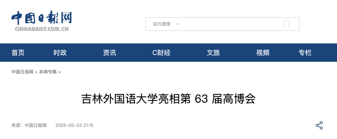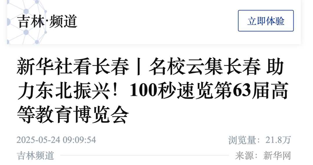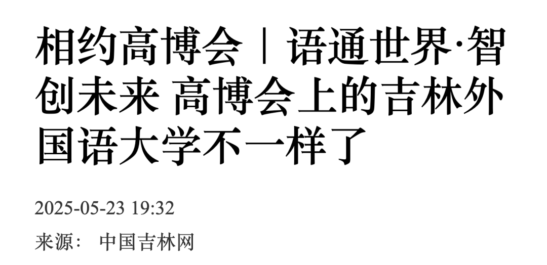 5月23日至25日,第63届高等教育博览会在长春举行。吉林外国语大学以“语通世界,智创未来”为主题,全面展示学校在教育改革与科技赋能方面的突出成果,受到多家媒体关注报道。新华社、中国日报网、中国新闻网、吉林日报·彩练新闻、吉林广播电视台、中国吉林网、长春日报、长春广播电视台以及城市晚报等媒体予以关注和报道。