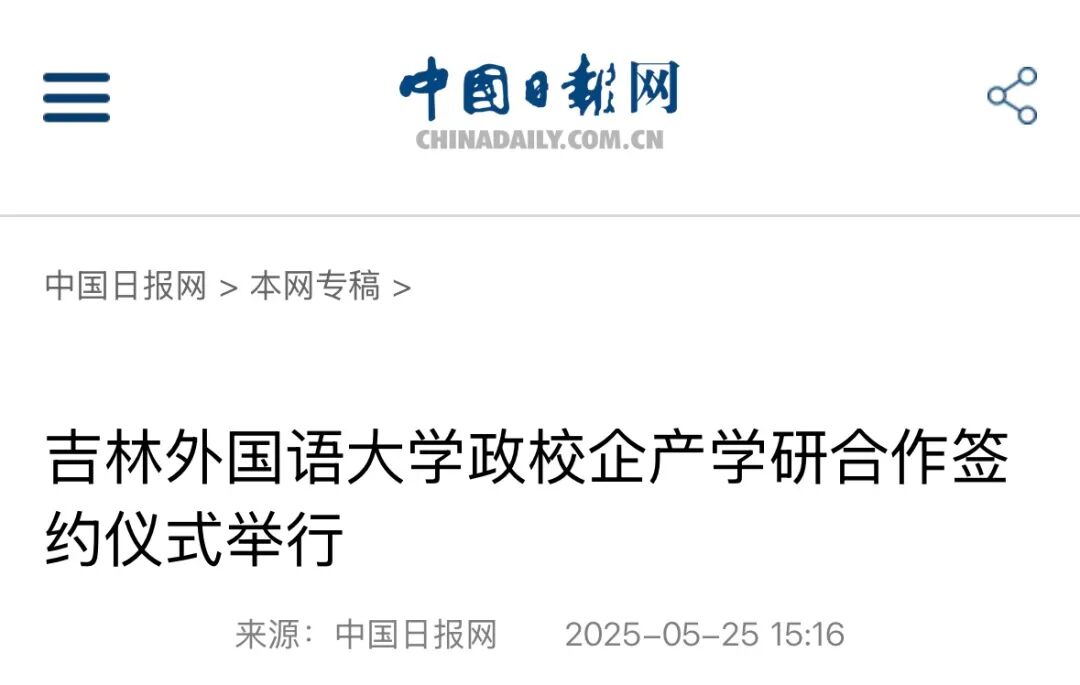 在校政合作领域,学校与长春市教育局将围绕人才培养、师资建设、实习实践等开展深度协作,搭建服务地方经济的合作平台,推动教育现代化与大中小思政一体化发展。校企合作层面,与华为聚焦大数据及 ICT 人才培养,共建专业群;与超星集团在教育类与数字媒体技术专业深化合作;与科大讯飞续约共建“人工智能产业学院”,新增学科专业群、实验室及就业指导机制;与中水一局联合培养国际工程语言服务人才。国际合作方面,与日本广岛大学在教学科研、师资培养等领域搭建交流平台,助力师生访学与成果转化。