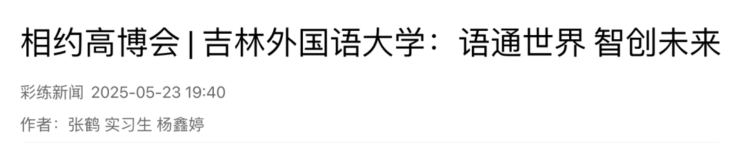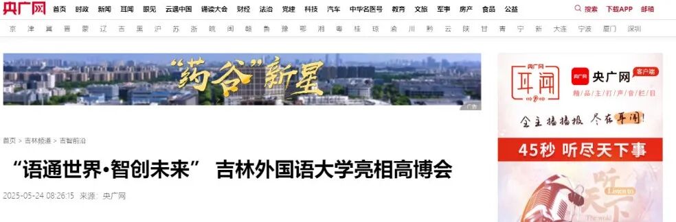 5月23日至25日,第63届高等教育博览会在长春举行。吉林外国语大学以“语通世界,智创未来”为主题,全面展示学校在教育改革与科技赋能方面的突出成果,受到多家媒体关注报道。新华社、学习强国、中国日报、中国新闻社、央广网、吉林日报、吉林广播电视台、中国吉林网、城市晚报、长春日报、长春广播电视台等媒体予以关注和报道。新华社客户端