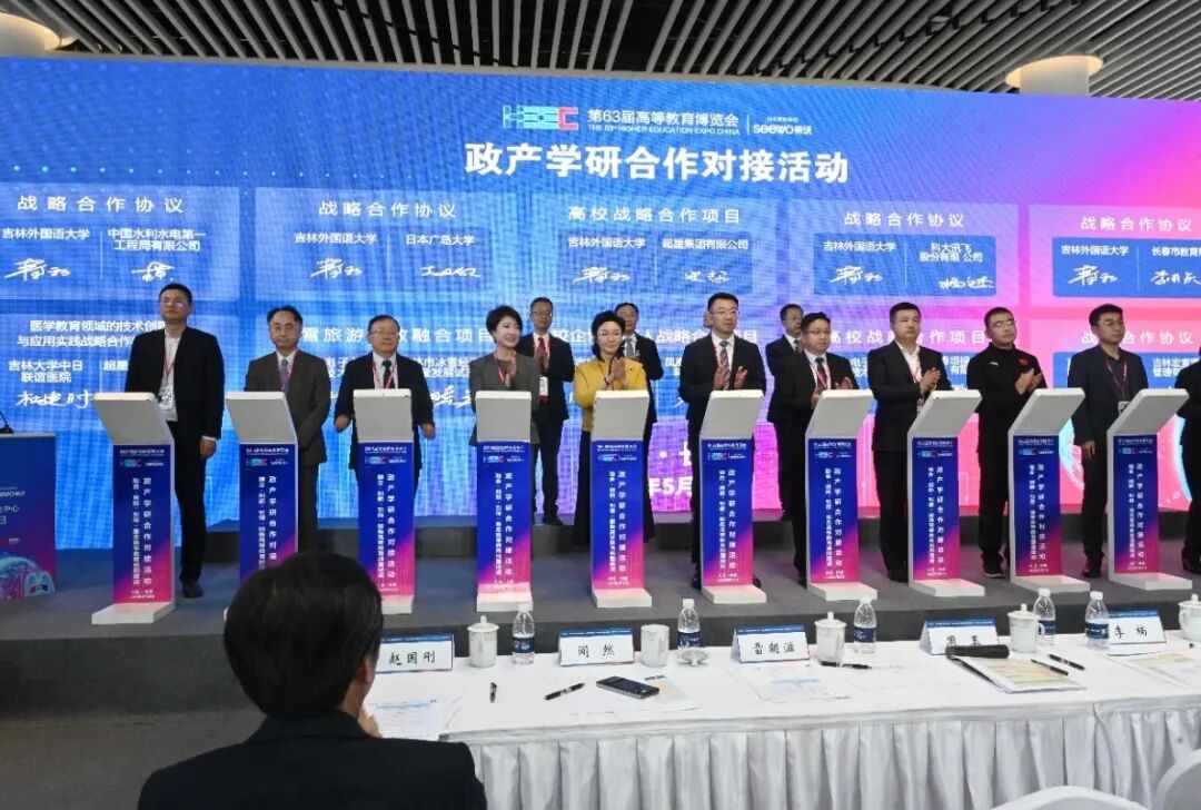 5月23日,第63届高等教育博览会期间,吉林外国语大学政校企产学研合作签约仪式举行。秦和校长代表学校先后与长春市教育局、华为技术有限公司等5家企事业单位签订校政、校企战略合作协议;与日本广岛大学签订校际框架合作协议,为发挥各自优势,推进产学研深度合作,共同培育高素质、高层次、高水平的应用型、复合型、外向型外语外事人才奠定坚实基础。