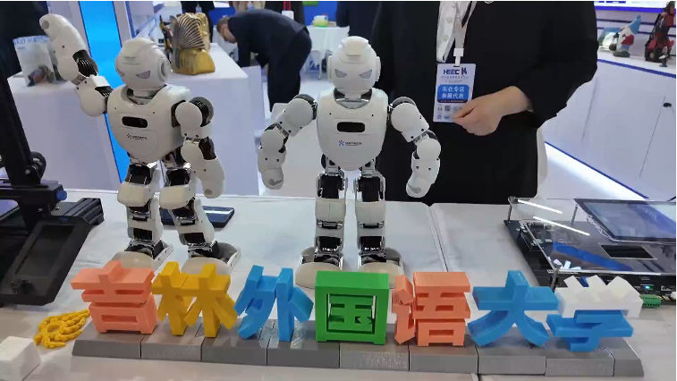 吉林外国语大学学生团队研发的“吉桥桥非遗文化国际传播数字机器人”,融合AI与多语种技术,生动展现学校“涉外大语言”学科群的雄厚实力。