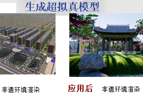 实践过程中,锦绣非遗项目团队真实依据实地非遗文化脉络、文化痕迹,根据大学生自有Sketch up建模、Escape渲染、PS、Rhino 3D建模技术,进行实地二次创作,将传承地区文化魅力充分融入数字领域,打造联合非遗传承基地的自有数字云展厅。