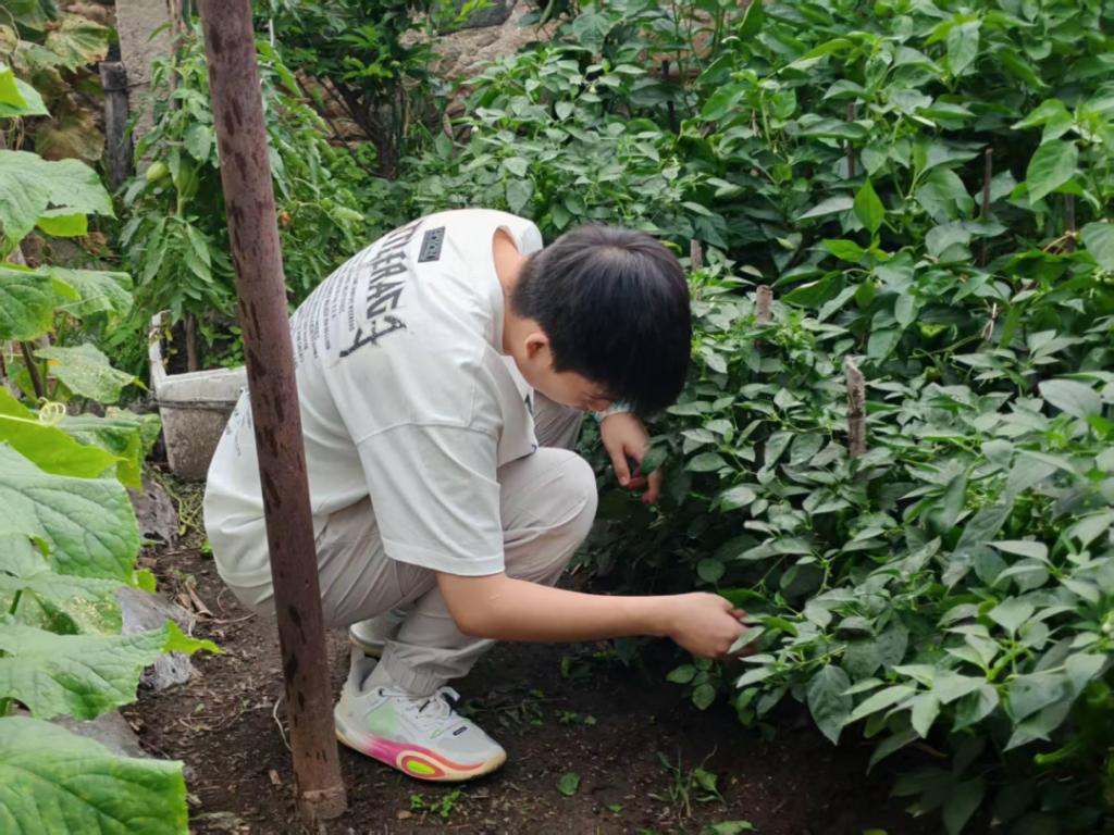 玉米种植区的工作则更注重田间管理。他们的任务包括拔除杂草、检查病虫害。农户说,金厂镇的玉米因气候优势口感清甜,但也需细心呵护。在田垄间,一点点清理争夺养分的杂草,同时观察叶片是否有虫洞或斑点,及时向农户反馈,协助做好早期防治。虽然汗水浸湿了衣衫,但看着整齐的玉米幼苗在风中舒展叶片,成就感油然而生。
