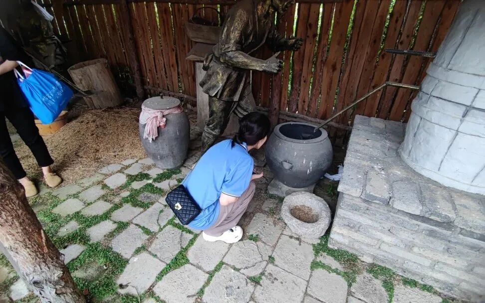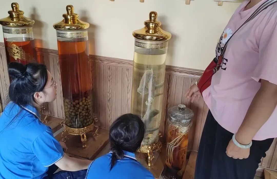 圣山阿里郎酒厂采用“三木”酿造工艺,并成功申请国家发明专利,突出朝鲜族文化风格,彰显出民族文化和地域特色。酒厂负责人首先介绍阿里郎酒厂朝鲜族特色屋瓦设计的巧妙,以及酒厂外沿壁画的设计理念与元素构成,介绍朝鲜族的文化底蕴。随后,他带领实践团参观“传统古法工艺”酿造,并介绍“将军酒”以及“天上大将军、地上女将军”字样的由来,将朝鲜族独特的传统文化融入产品中,意为传承。
