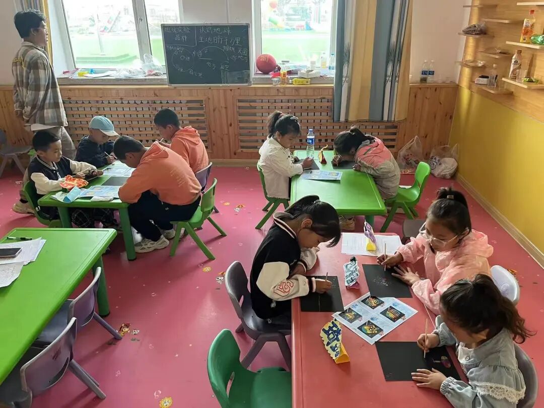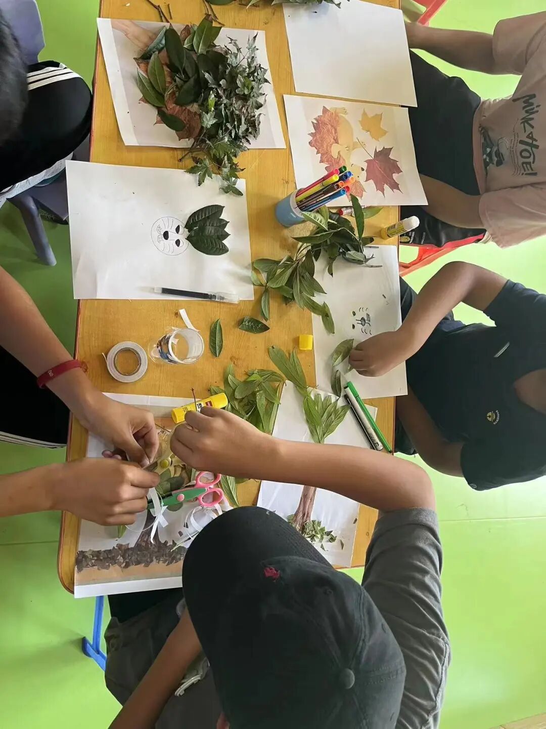 中午坐在操场上看小朋友们玩滑梯时收获了一天中的第二个惊喜,班里的一个小朋友,叫琦琦,突然过来抱住我,不知道小孩子具体表现喜欢的方式是什么样,但在那一刻感受到的人是孩子对我的喜爱和信任,以及对我们整个新苗支教团的认可和喜欢。下午进行大班的原定课程树叶画,每一位孩子都在积极主动的发挥自己的想象力,用叶子去装饰充实自己的作品,也在这个过程中第一次和大班的孩子们有了更多的交流,而孩子们的想象能力和动手能力永远是老师想不到的,他们在将脑海中的画面呈现到书本上时,总会带来不一样的惊喜