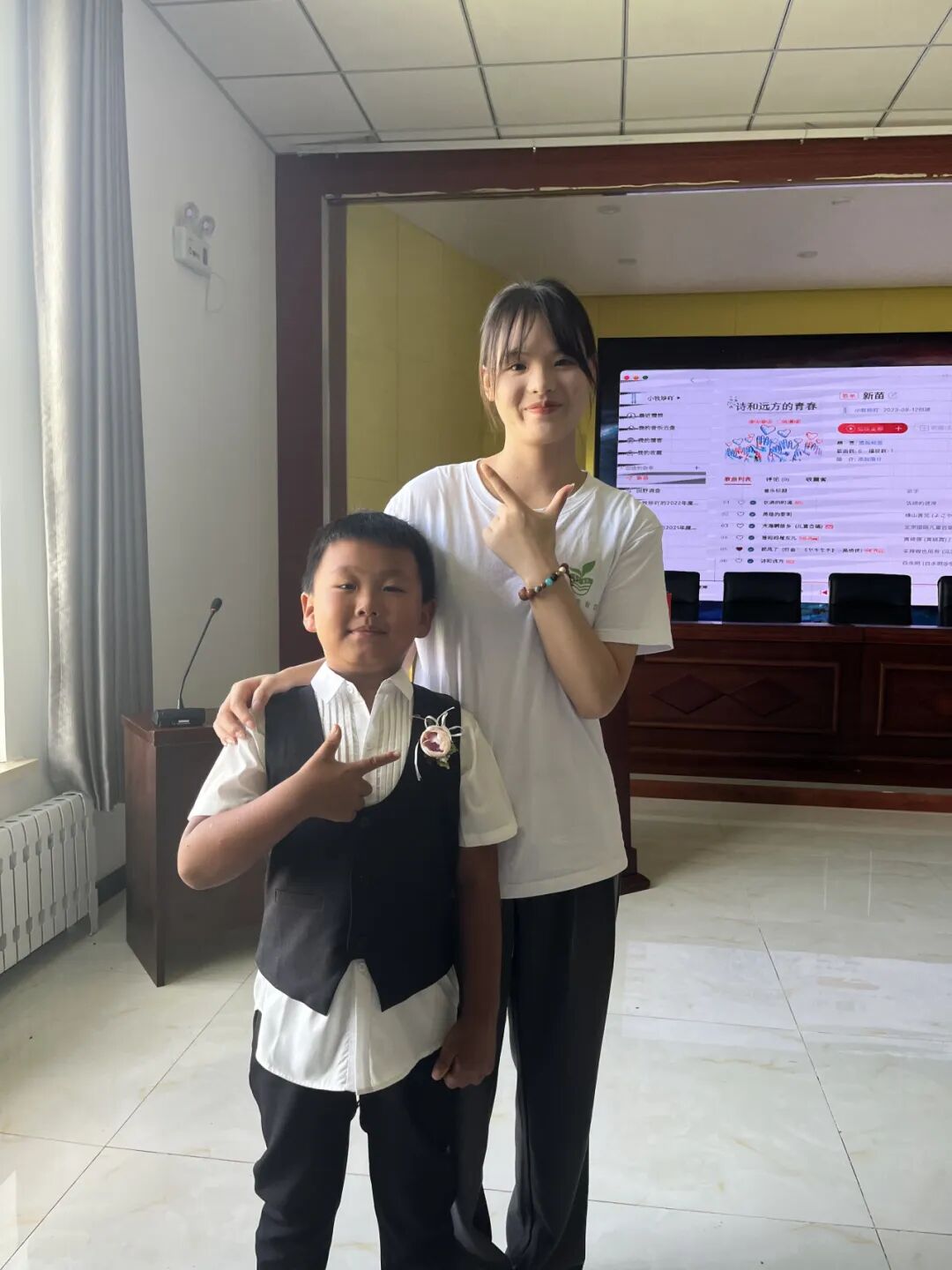 我来自吉林外国语大学,国际艺术学院播音2101张培琰,也是新苗支教团的一员,我愿将这份责任与热爱转化为未来生活的方向与动力,传承吉外“人人都是志愿者”的精神,用我自己的方式,渺小的力量,去创造小奇迹,让这些孩子于一方寸土间窥大千世界!