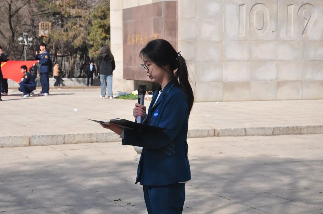 国际文化旅游学院旅游管理2201班范媛媛同学介绍了长春解放纪念碑的由来,生动讲述了英雄们的感人事迹。