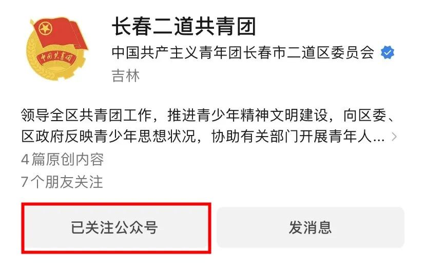 第一步:关注长春二道共青团公众号