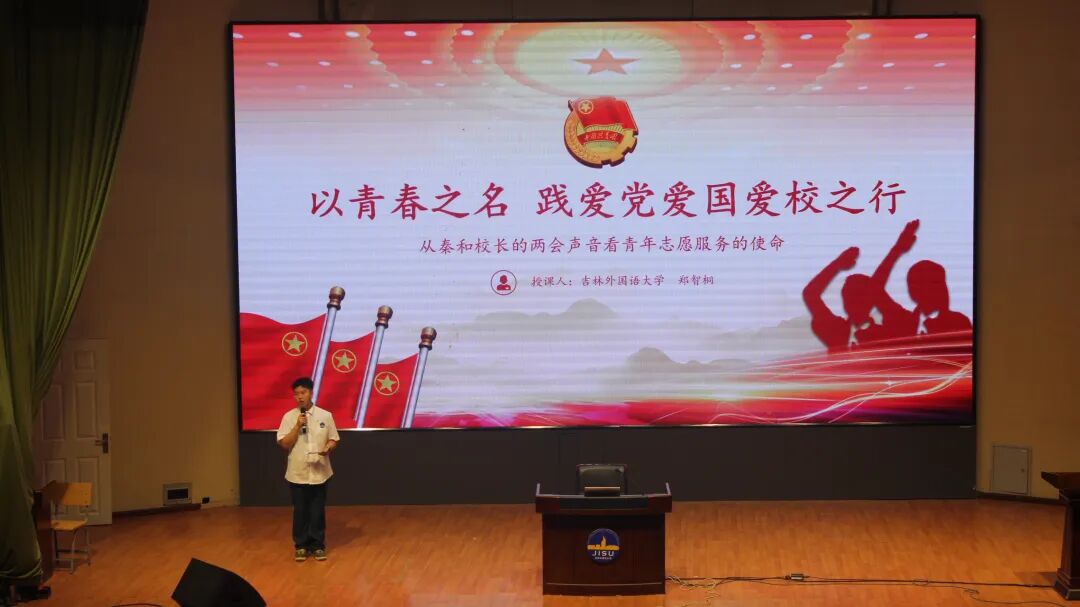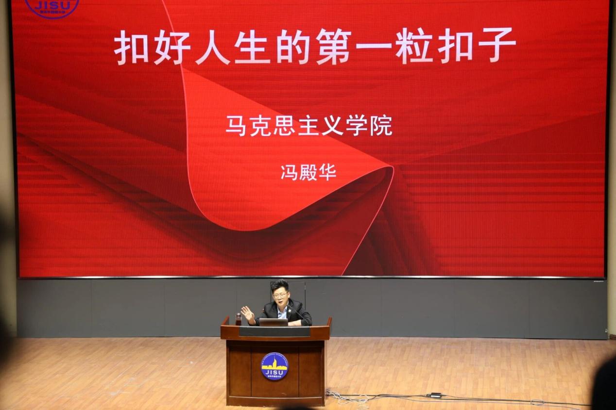 下午课程由吉林外国语大学马克思主义学院副院长冯殿华老师主讲,以《扣好人生的第一颗扣子》为主题,引导同学们深刻理解共青团的组织属性与担当精神。