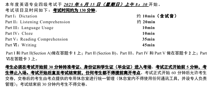 • 证件及用品准备:提前准备好准考证、身份证等证件,以及黑色中性笔、铅笔、橡皮、耳机等考试用品。