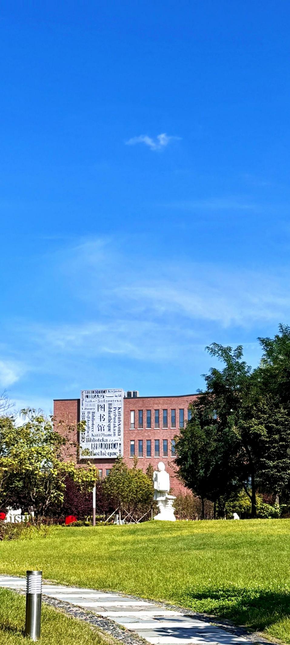 夏日的河流在校园里静静流淌,图书馆旁的荷塘是最诗意的存在。新绽的荷花轻轻在水面滑动,粉白花瓣像婴儿手掌般柔软,偶尔有蜻蜓停驻,荡开一圈圈细小的涟漪。傍晚总能看到溅起的水花里,藏着彩虹的碎片。