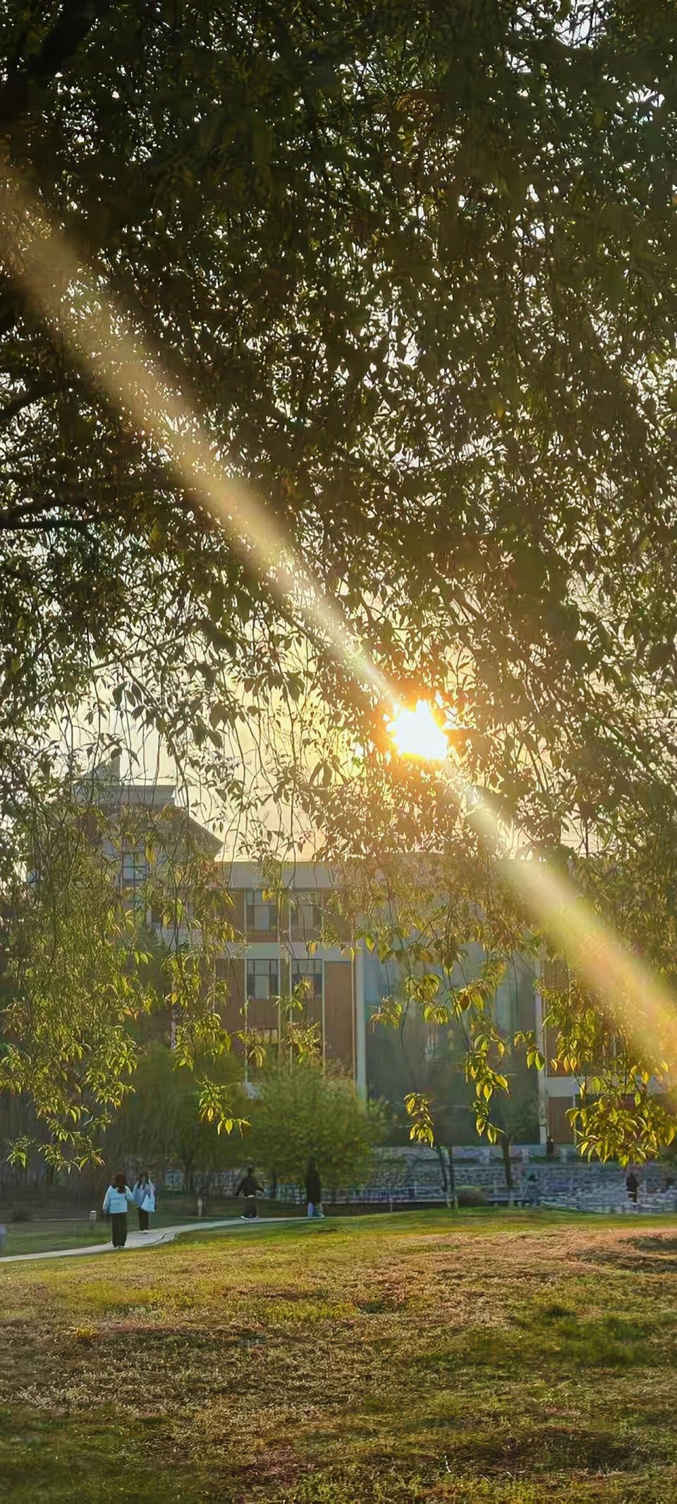 偷偷告诉你,图书馆前的河流藏着校园最惊艳的"黄金半小时"——每天日落时分,当夕阳以45度角斜照水面时,整条河瞬间被点燃:波光化作细碎的金箔,倒映着岸边的樱花树与石桥,偶尔掠过水面的白鹭会成为最灵动的点缀。