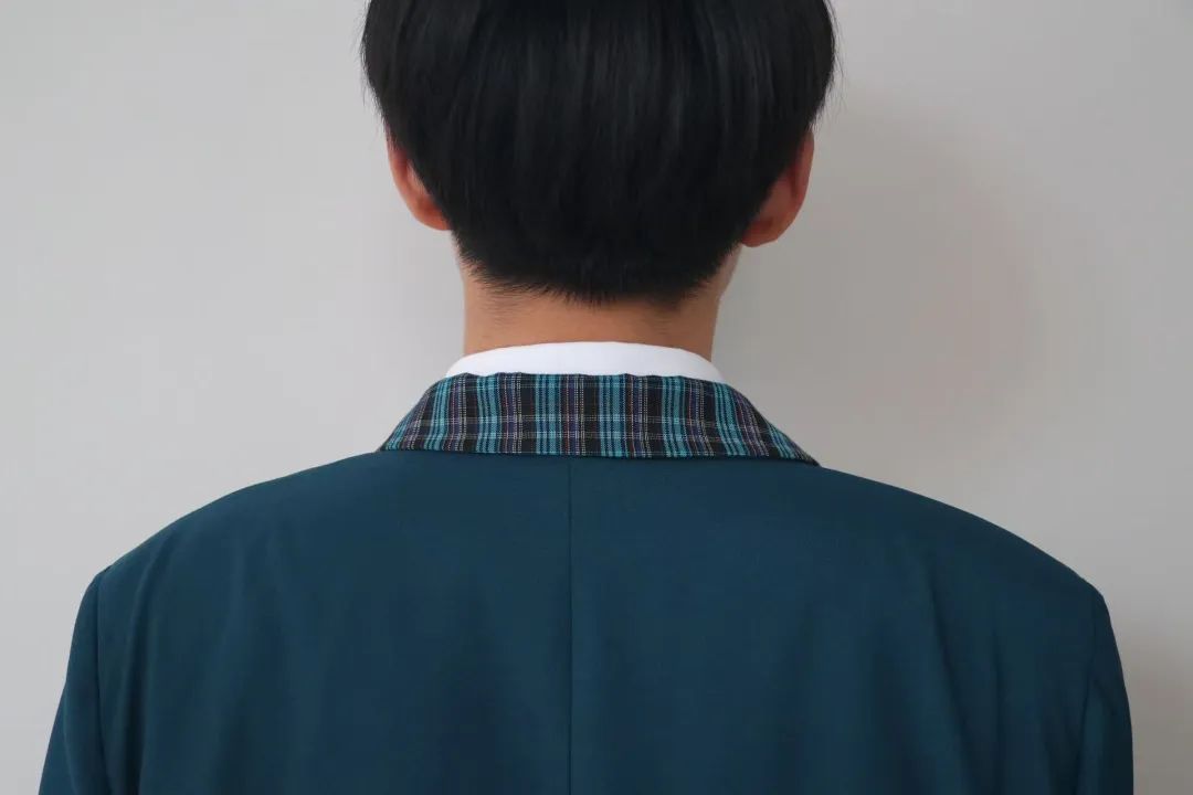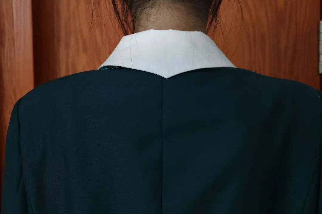 必须穿正装校服,保持整洁,纽扣扣好,领子翻平。