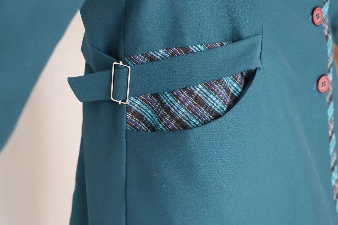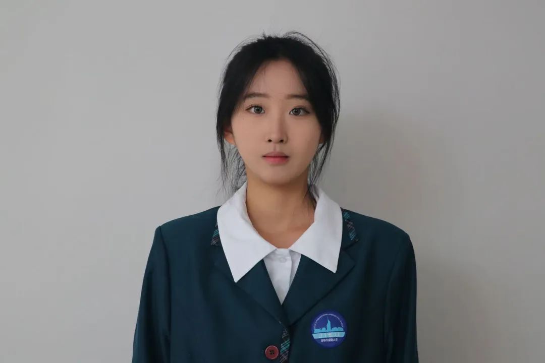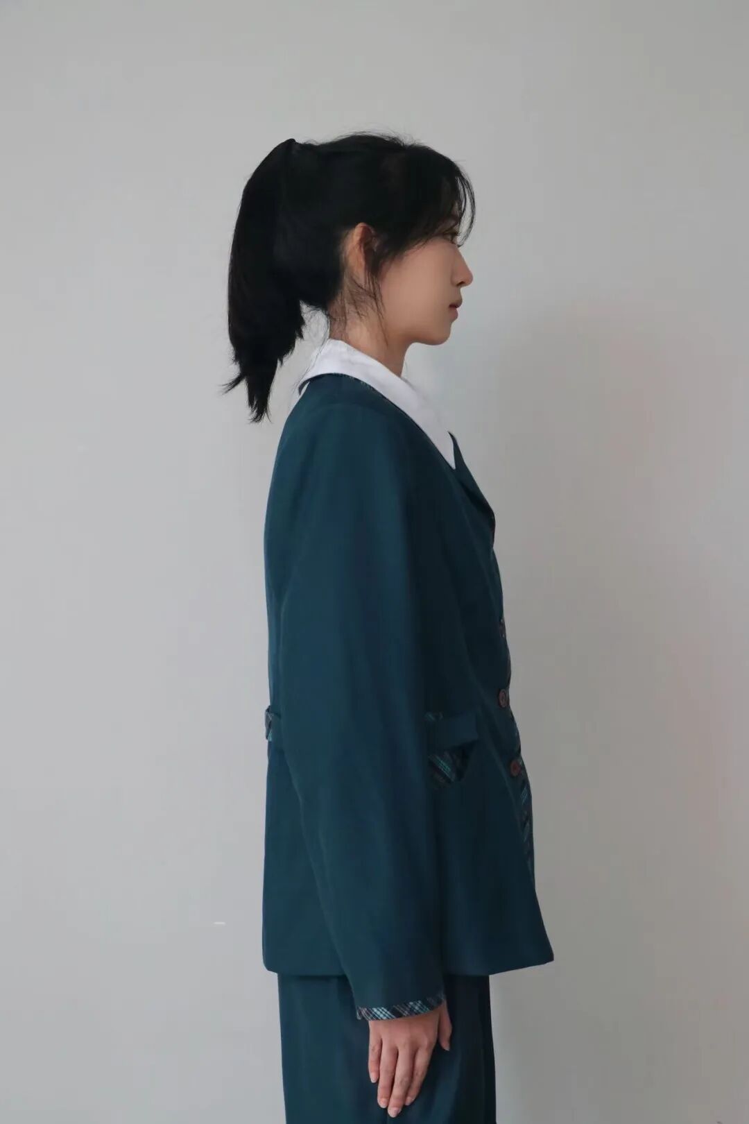 穿长袖衬衫搭配西装校服外套,长裤,衬衫袖口以及领口扣子系好,女生腰间两侧腰带需系紧,衬衫下摆需要扎进裤子里。保持整洁。