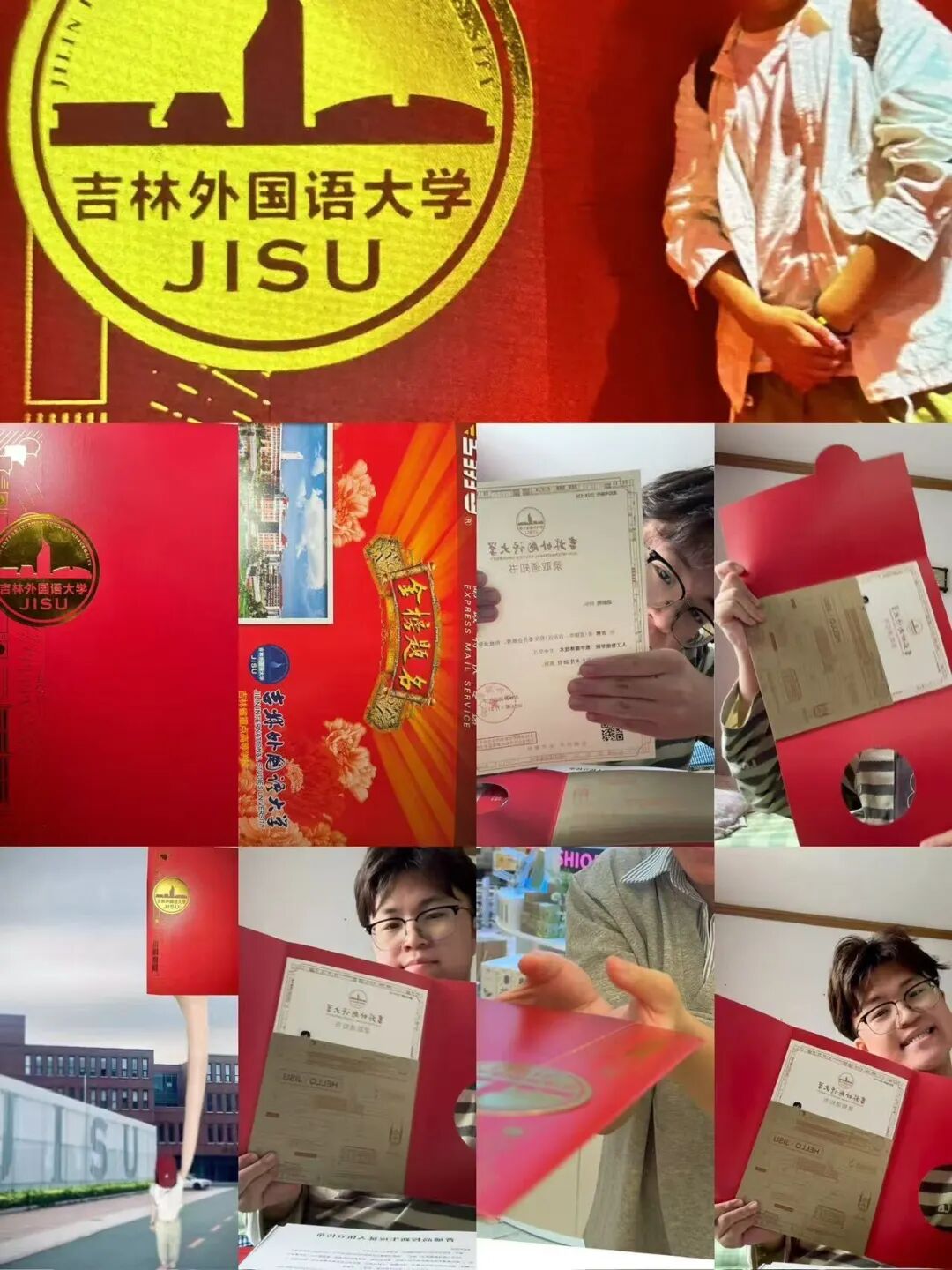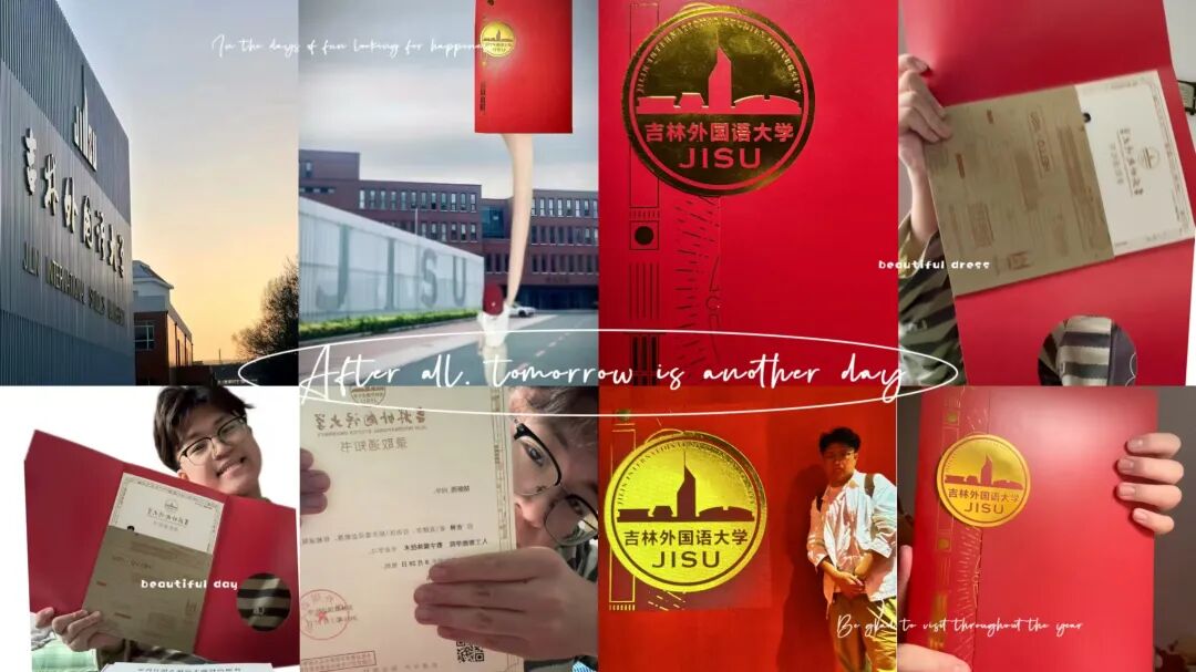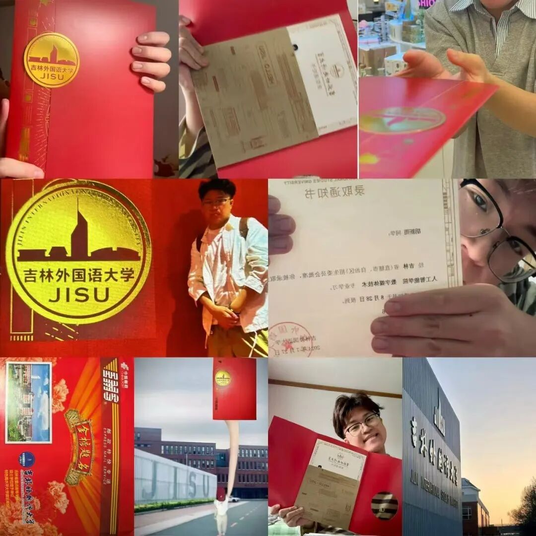 在众多投稿作品中,我们看到了吉外学子们的多彩青春与炙热梦想。有的同学与家人一同分享这一重要时刻,有的则与家乡美景相伴,定格下与吉外的初次邂逅。这些作品不仅记录了大家的喜悦,更展现了吉外学子们的多才多艺与独特创意。