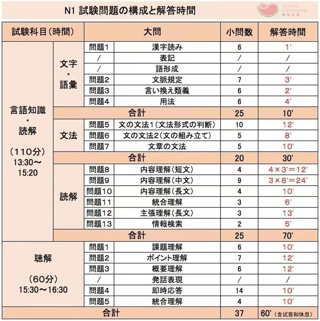 日语N1考试内容主要包括文字、词汇、文法、读解、听解四个部分,具体题型如下: