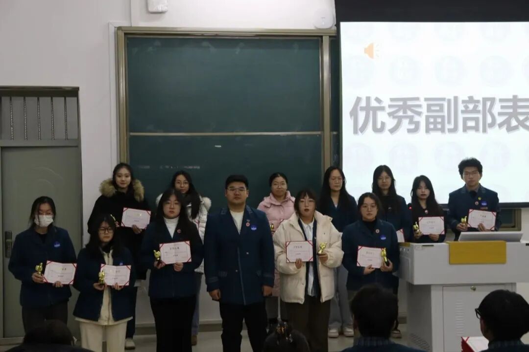 毕金成主任为本学期评选出的十五位优秀副部进行颁奖并发放奖品,徐梓洋副主任为二十位优秀部员进行颁奖。毕金成主任表示,吉外新青年账号在全校师生中影响力大、传播面广、阅读量高。这离不开全体成员的共同努力,希望所有同学都能够在新的一年,继续努力,一同创造融媒体的新篇章!