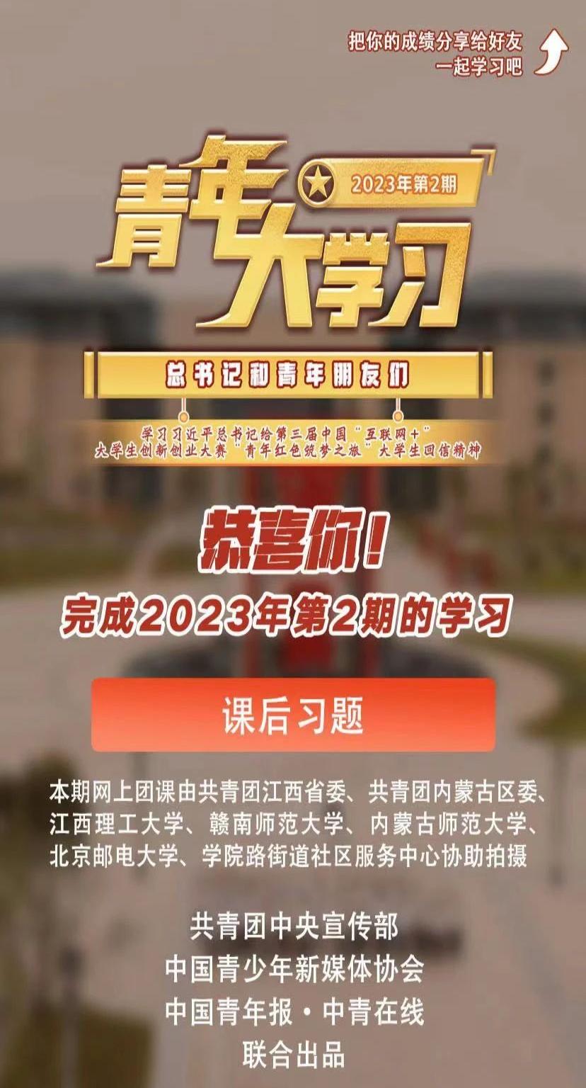 学习新思想,争做新青年上周,我们学习了2023年第1期“青年大学习”网上主题团课学习今天,新的一期来啦!