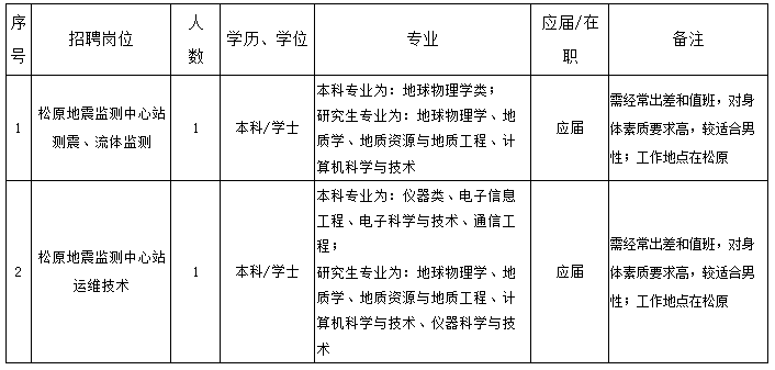 招聘公告发布网站:①中国地震局官方网站(网址:https://www.cea.gov.cn/)、②吉林省地震局官方网站(网址:http://dzj.jl.gov.cn/)。