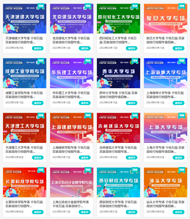 联合各高校开展千校万岗百家高校行2023春季校园招聘活动,目前已上线近30场高校专场招聘会,精准匹配合适企业,助力更高质量就业。