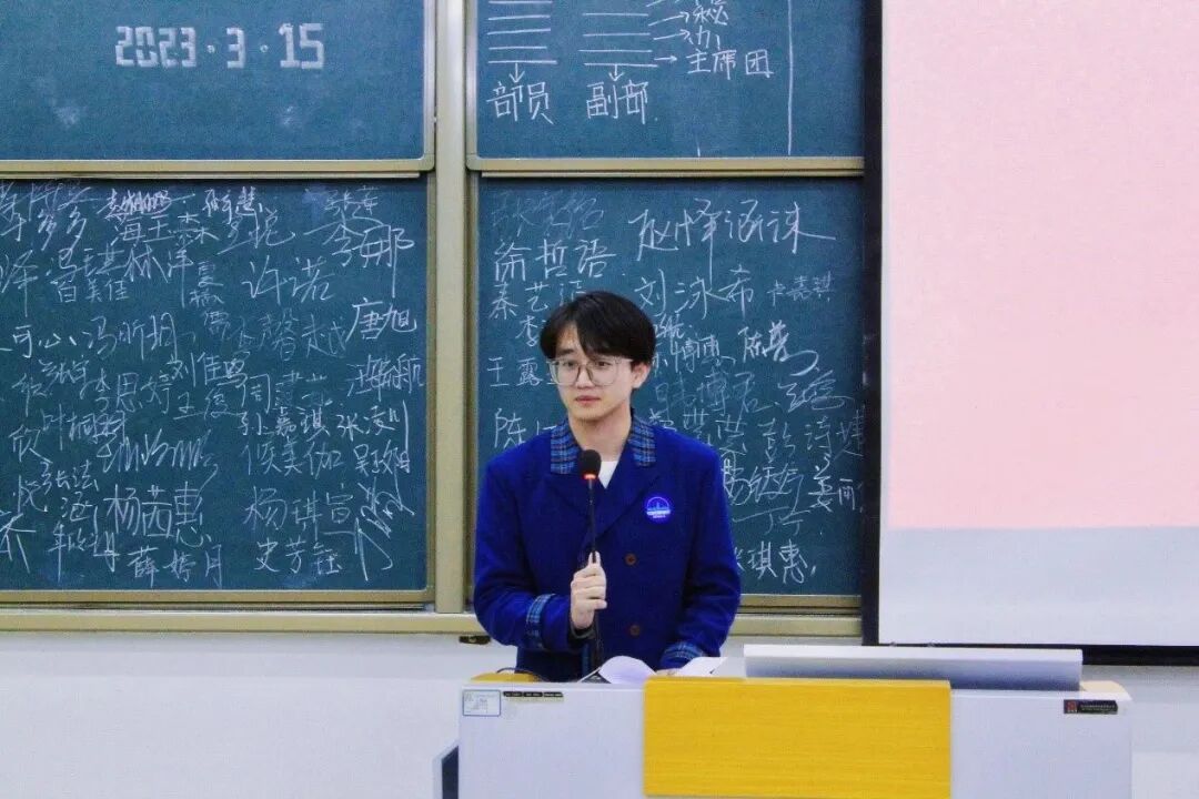 最后,对大家的到来表示诚挚的欢迎,校学生团委是一个温暖团结的大家庭,希望大家能早日融入进来,认识更多的朋友,收获到更多的友情。他回想起三年前的自己,在这期间校学生团委教会了他很多,他希望未来的我们也能在这里获得成长。